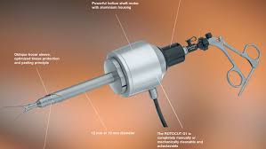 Electromechanical, sometimes called "Power" morcellation relies upon devices that have a rotating cylinder with the distal end fashioned as a cutting blade. By grasping the tissue with a special tenaculum, withdrawing the tenaculum thereby juxtaposing the tissue with the blade, the specimen can be morcellated, withdrawing the cylindrical tissue specimens.